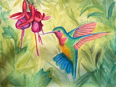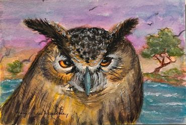 4" x 6" "Falcon's Gift" Watercolor. 2023 Framed (in vintage frame with special mat) $95.00 plus shipping.